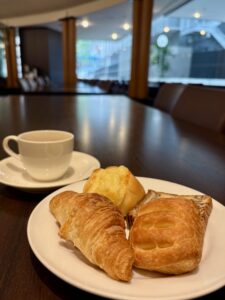 先日より、期間限定で無料軽朝食(パン)の提供を開始いたしました。