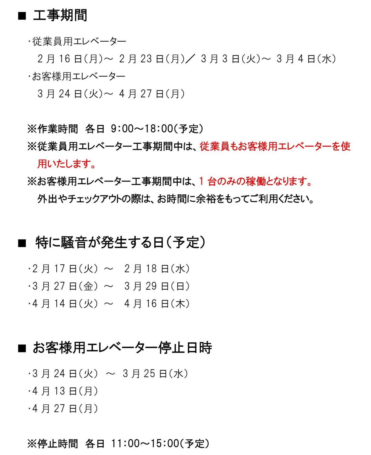 ご宿泊のお客様にはご不便・ご迷惑をおかけいたしますが、安全に十分配慮し作業を進めてまいりますので、
